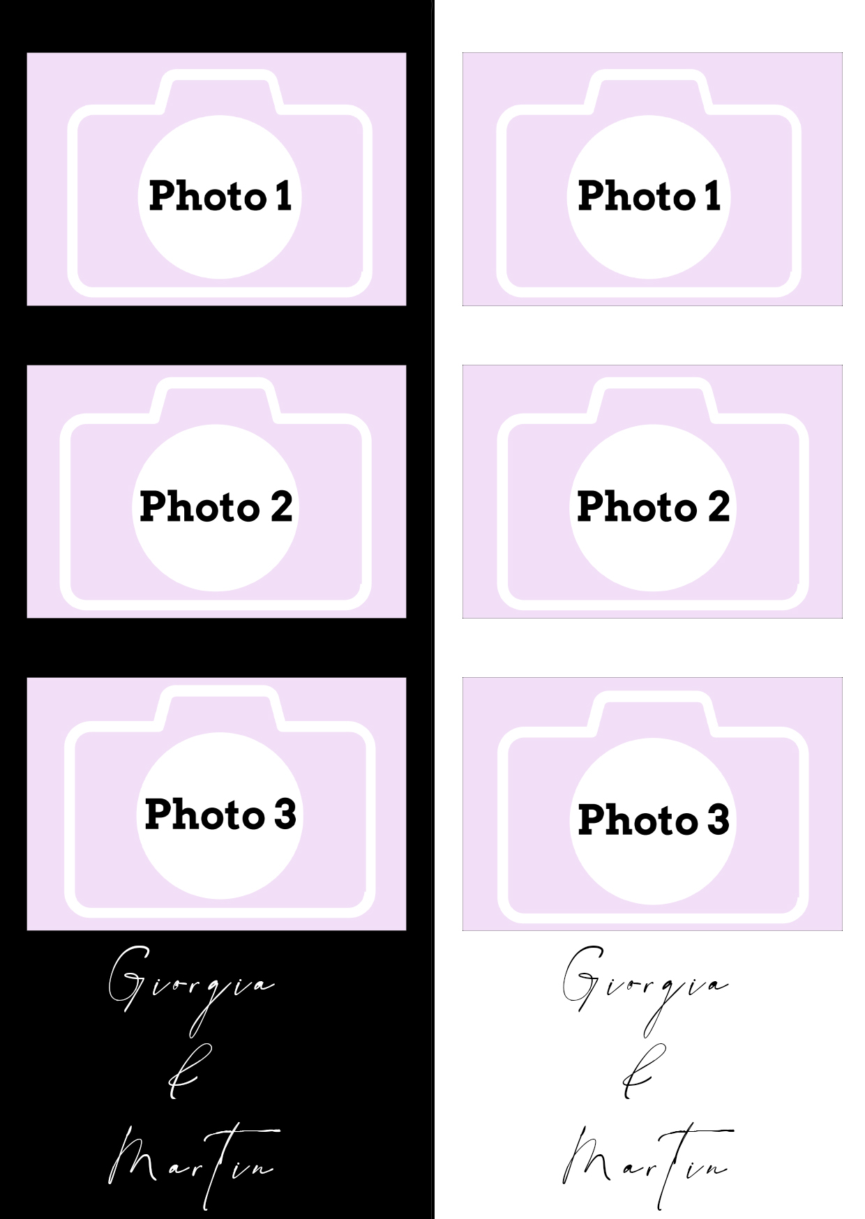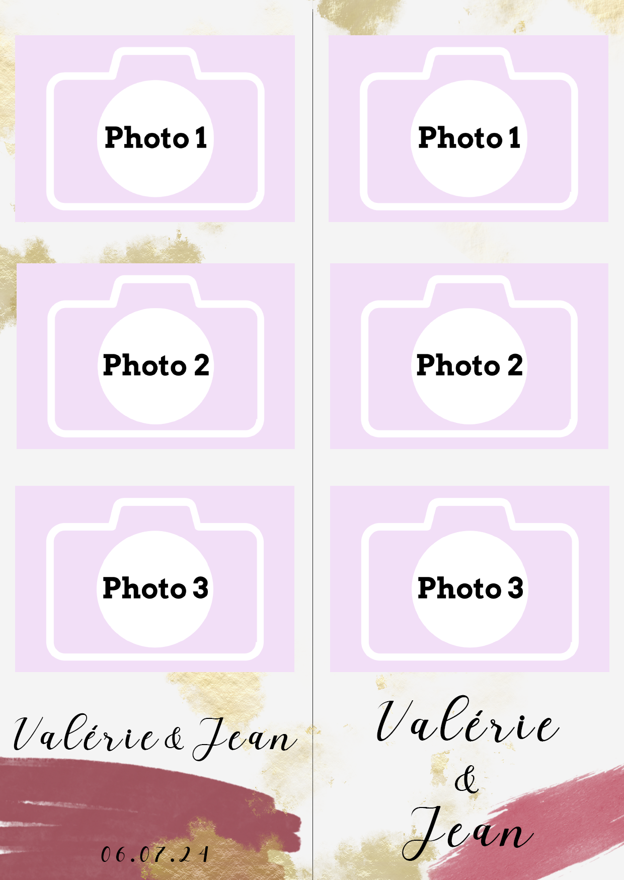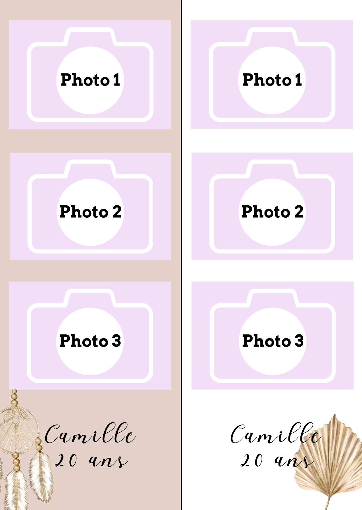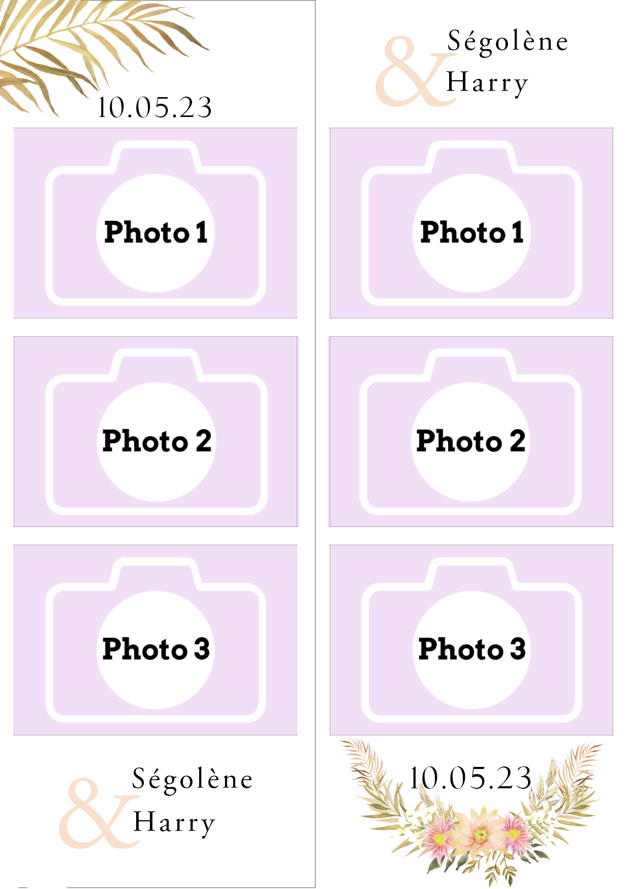 - Laisser nous concevoir votre mise en page grâce à l’option « déléguer ma mise en page » Chaque mise en page est modifiable ( texte, couleur…) il vous suffira juste de m’informer des modifications souhaitées lors de votre réservation dans l’espace dédié.