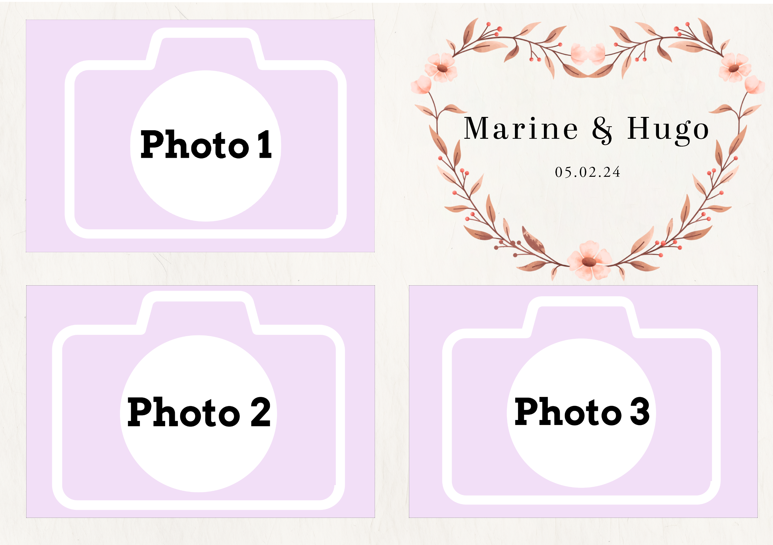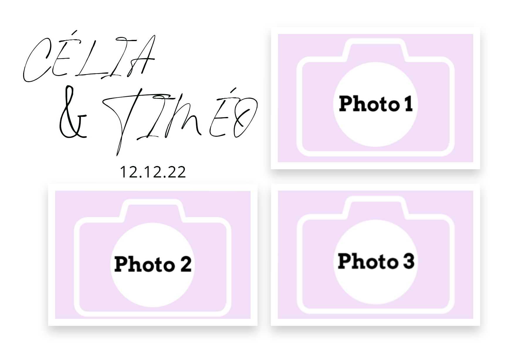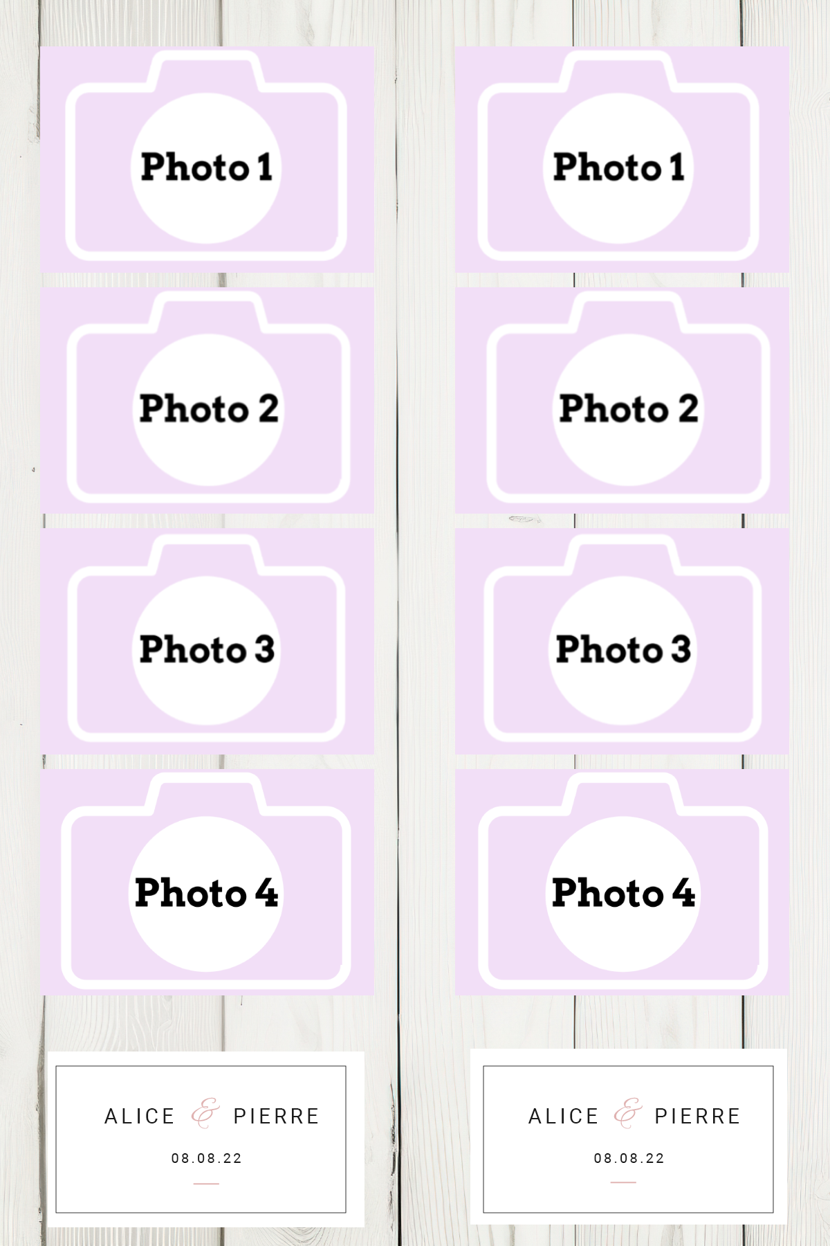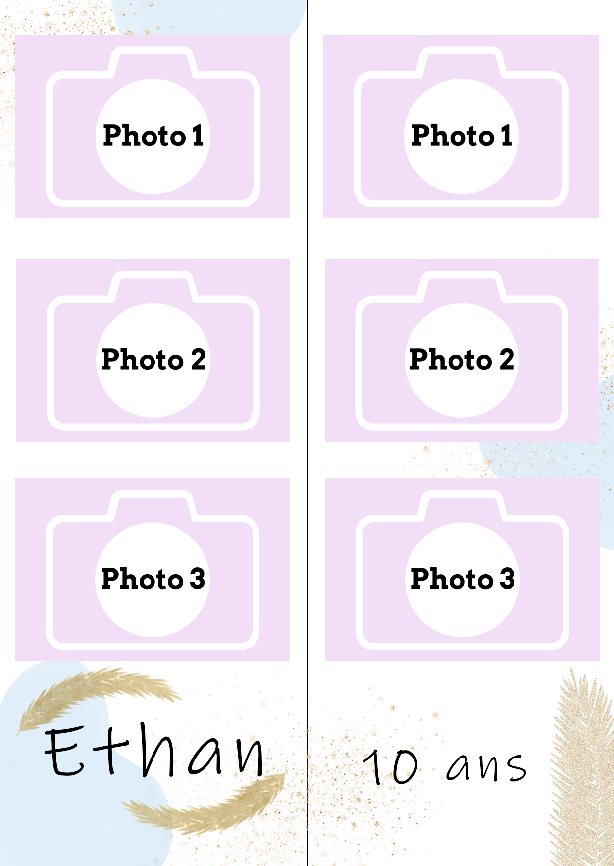 - Laisser nous concevoir votre mise en page grâce à l’option « déléguer ma mise en page » Chaque mise en page est modifiable ( texte, couleur…) il vous suffira juste de m’informer des modifications souhaitées lors de votre réservation dans l’espace dédié.