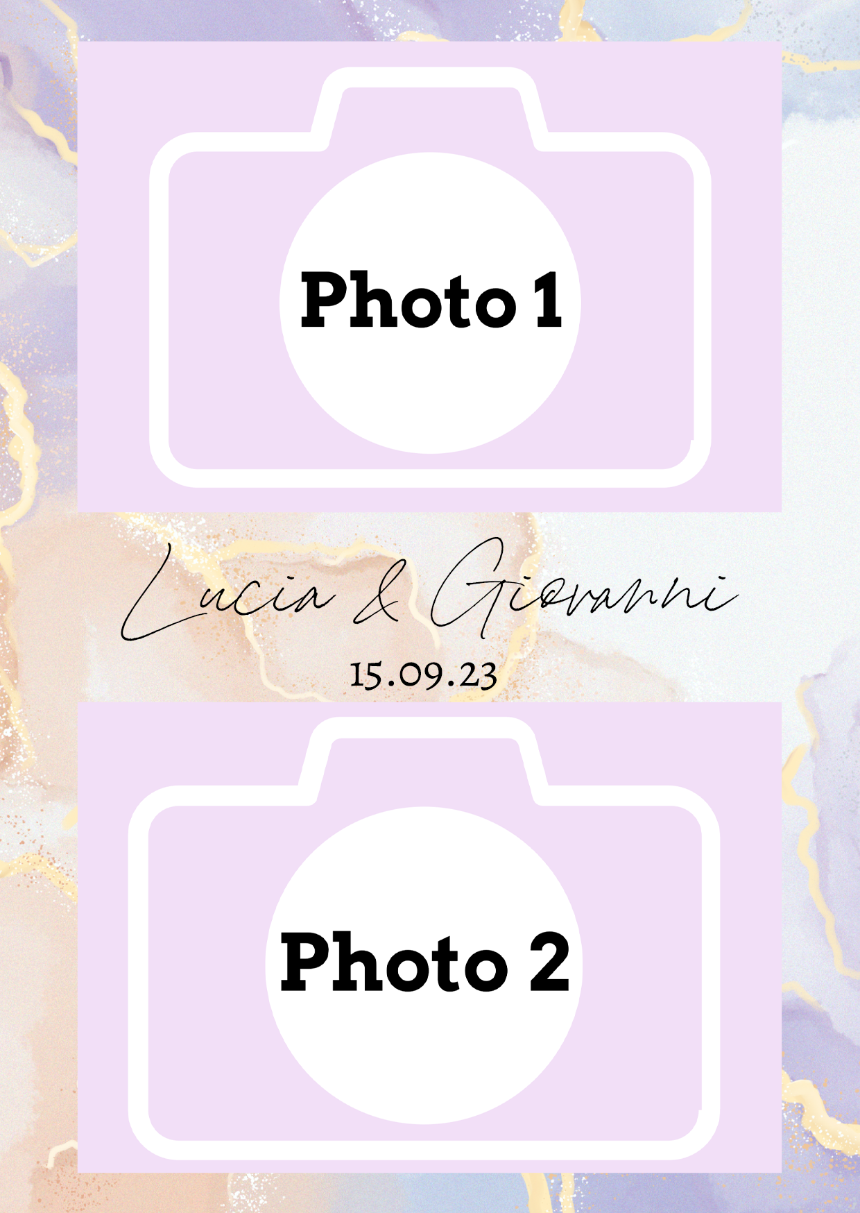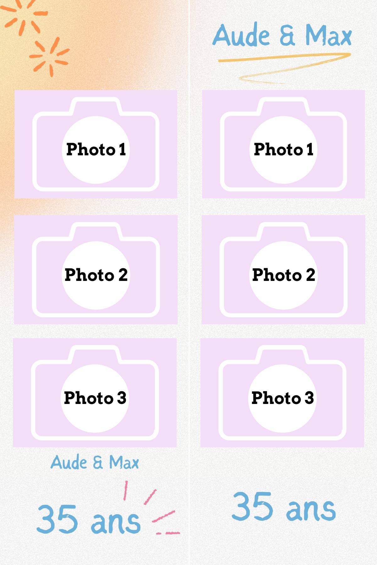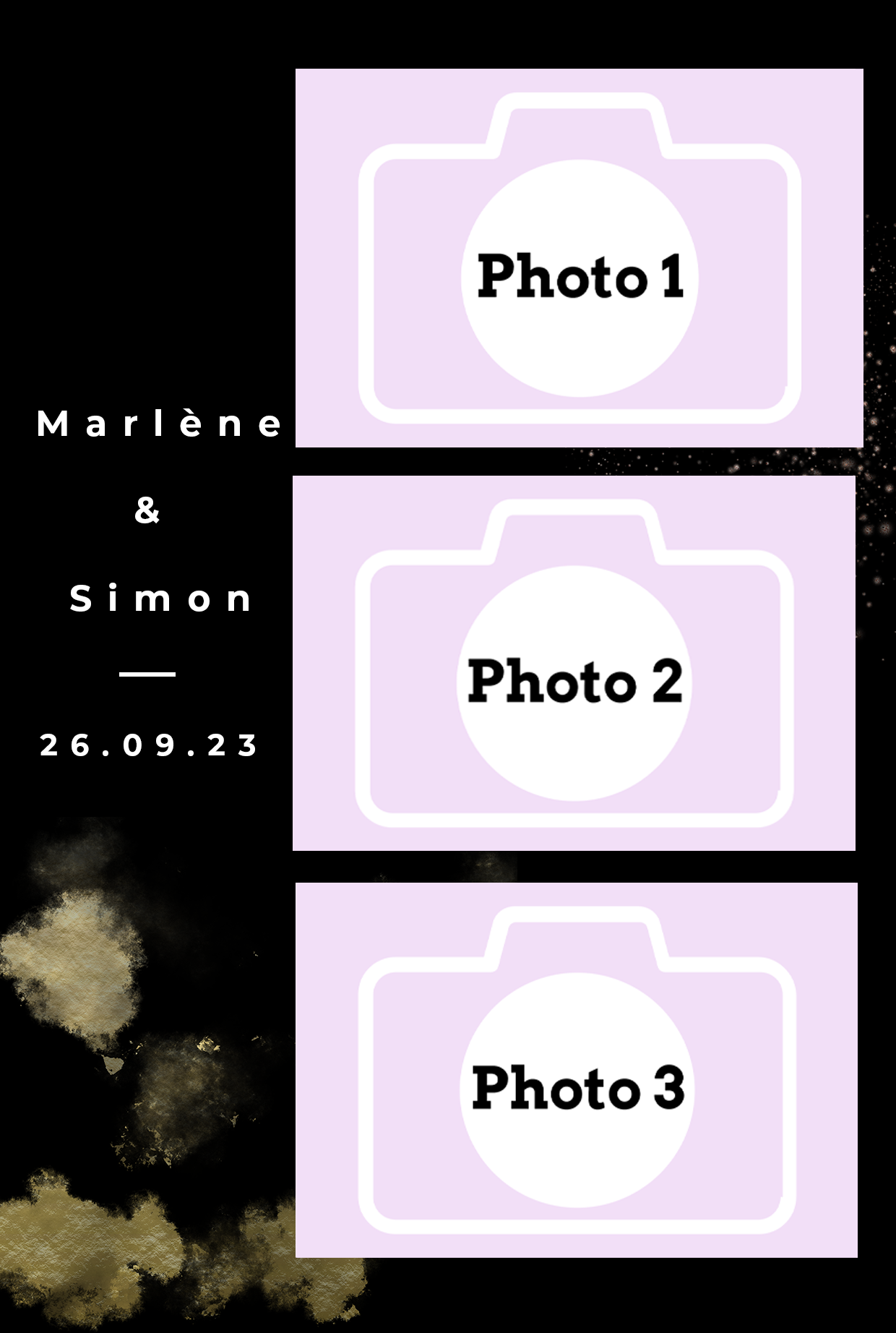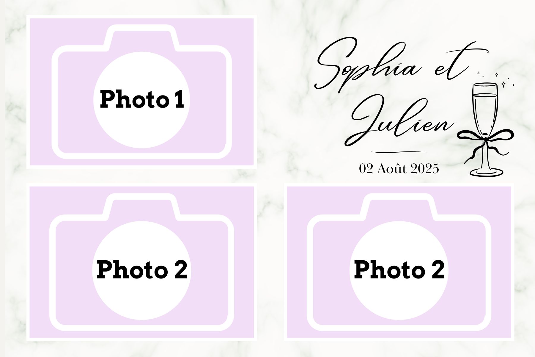 - Laisser nous concevoir votre mise en page grâce à l’option « déléguer ma mise en page » Chaque mise en page est modifiable ( texte, couleur…) il vous suffira juste de m’informer des modifications souhaitées lors de votre réservation dans l’espace dédié.