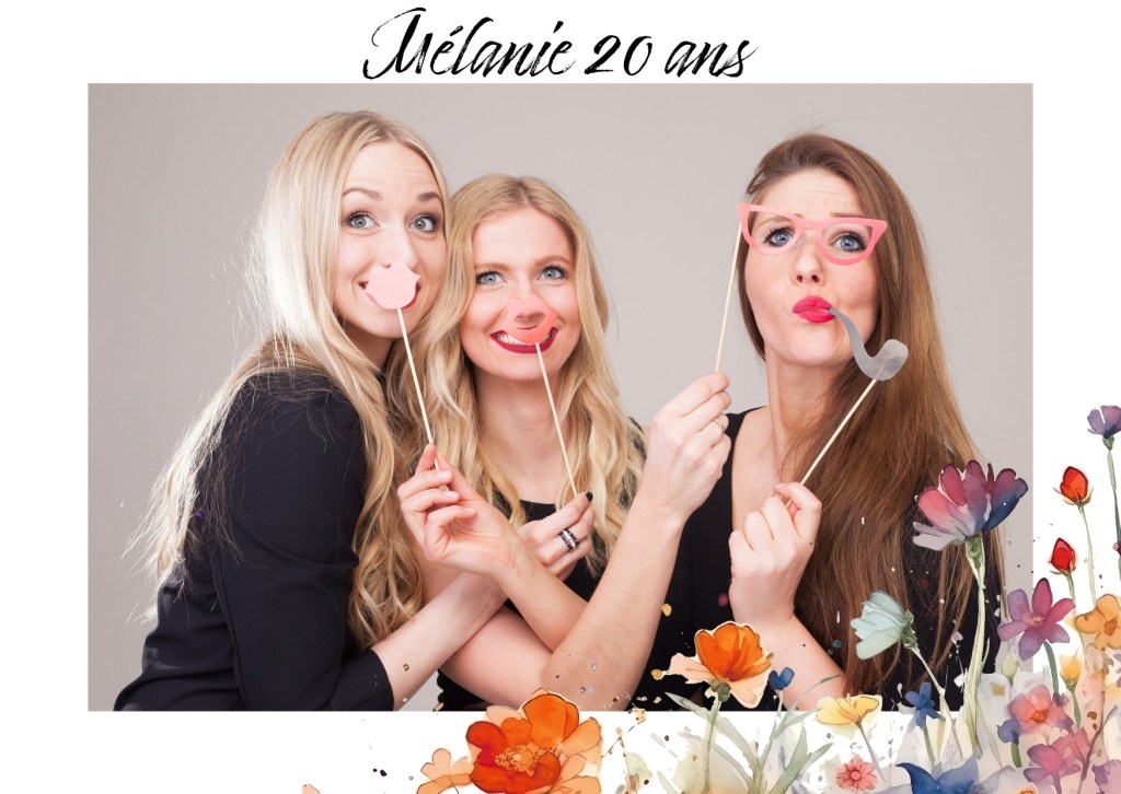 Apportez une touche SO FUN à vos photos avec cette option ! Plus besoin d’achetez une multitudes d’accessoires ! Personnalisez vos photos avec les accessoires numériques à l’effigie de votre évènement ! (Date, prénoms, messages et bien plus encore)